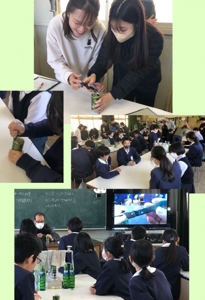 最後に班単位で、缶切りを使って缶を開けましょう、と競争をしましたが、さて、この道具をどう使うのか、知恵の出しあいになりました。若い先生も参戦しましたが、不思議な形を使いこなすのは至難の業だったようです。