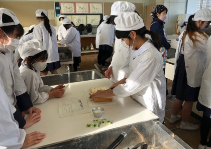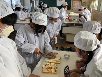 家庭科室では調理実習が始まりました。