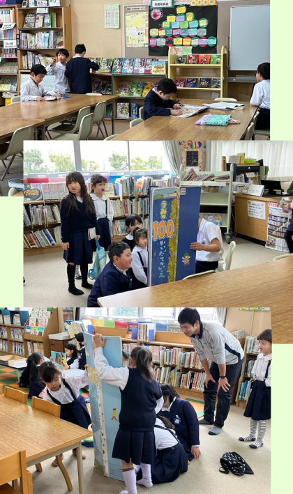3時間目の図書室。1年2組の子どもたちがいます。