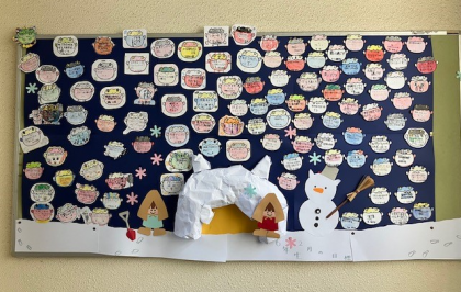 なるほどですね。あとから貼られていったカードも鬼の顔の形でした。たくさんたくさん用紙いっぱいに貼られています。