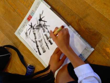 本校の保護者であり、水墨画家として世界的に活躍されている宓冬瑩(ミー・トンイン)さんに来ていただき水墨画体験教室を開きました。