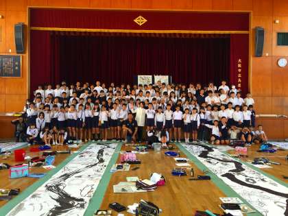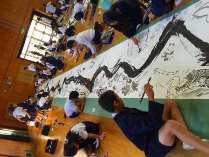 また、20mの長さの紙に巨大な龍を描いていただき,その周りに子どもたちが思い思いの生き物を描く大きな作品も作りました。