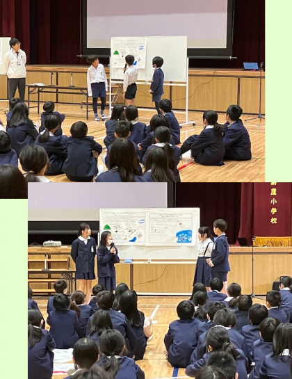 5時間目。5年生が講堂で出前授業を受けました。これまで取り組んできた「空飛ぶクルマ」の最後のまとめの時間です。