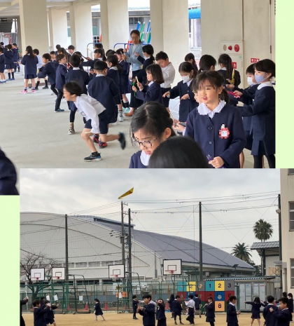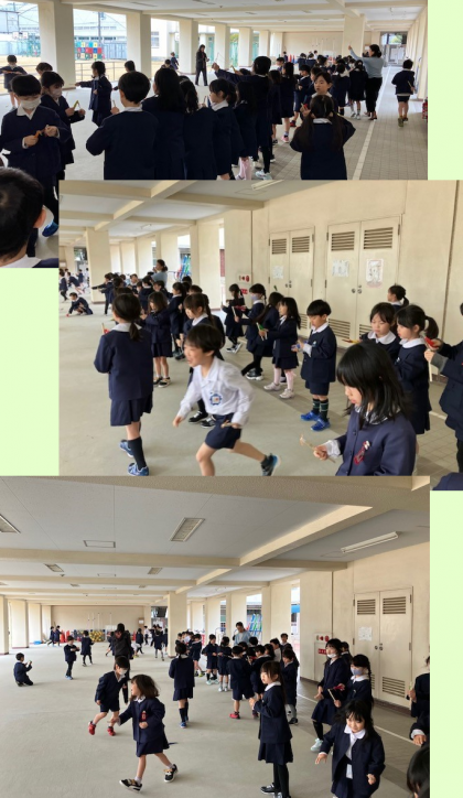 最初はピロティで飛ばしていましたが、だんだん高く遠くという気持ちが湧いてきたきた子どもたちは、徐々に運動場に飛び出していきます。
