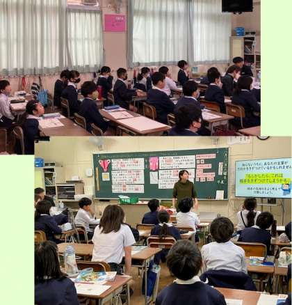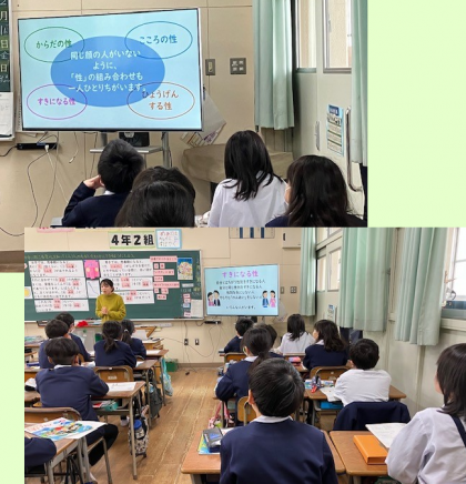 今週、4年生が保健室の先生から2回目の保健指導を受けました。