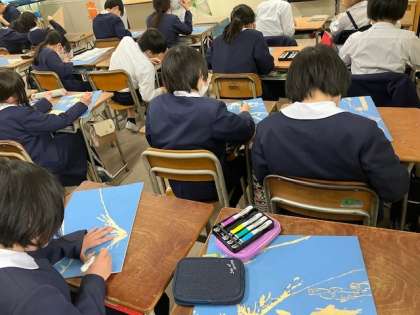 黙々と子どもたちが打ち込んでいるのは、版画の制作です。