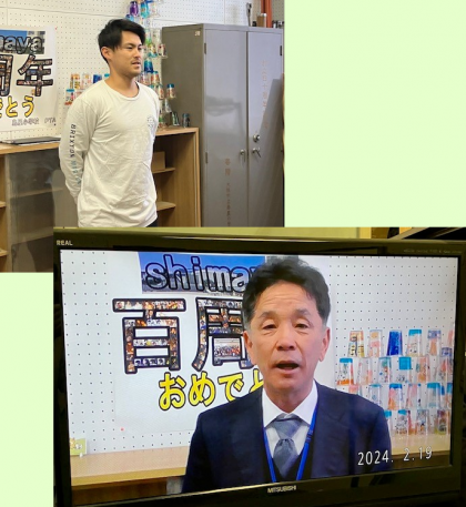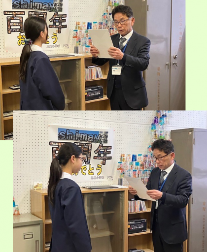今朝は今にも雨が降り出しそうな空模様だったため、児童朝会は放送室からの中継になりました。