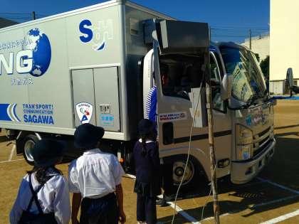 また、佐川急便のトラックの運転席にも乗せていただき、トラックには死角があることを目で見て学習することができ、子どもたちにとっても良い経験となりました。