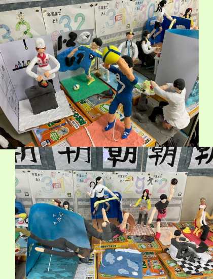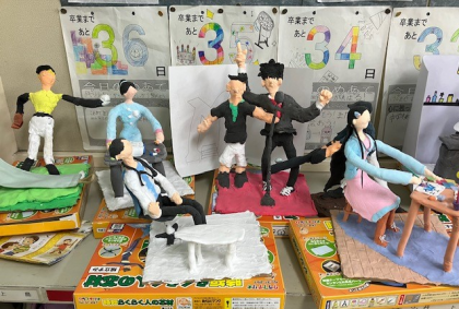 その作品群の後ろには、卒業まであと〇日の文字が見えました。
