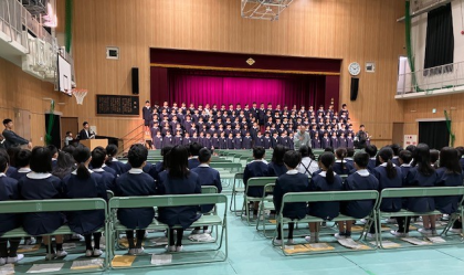 2・3時間目。5・6年生が合同で卒業式の練習をしました。