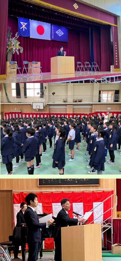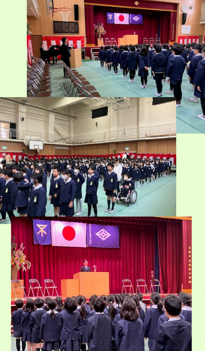 大阪市歌斉唱のあと、校長先生のお話を聞きます。