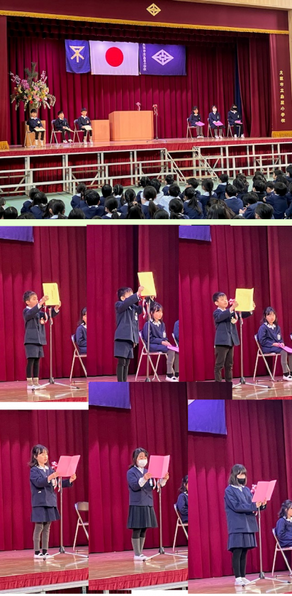 その後は、1年生と4年生のクラスから一人ずつ、代表として、今年度頑張ったことや、次の目標について、自分の作文を読み上げました。