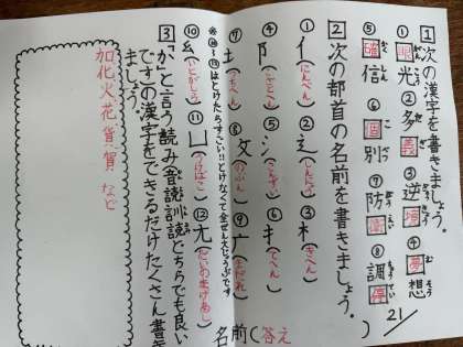 2枚目は学習係(会社)さんがつくった漢字プリントです。