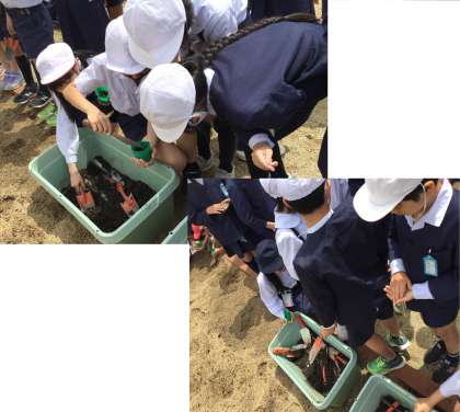 「いつ,芽が出ますか?」と今からワクワク,大きく育つのを楽しみにしている子どもたちでしたが…さて,どうなるでしょうか。芽が出たり,成長したりと変化が見られたら,またこちらでお知らせしようと思います。