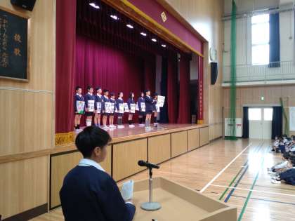 今朝の児童集会では、委員会活動の各委員長あいさつがありました。