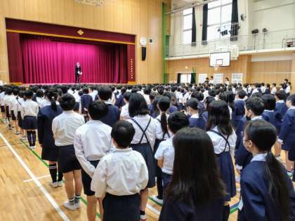 今朝の児童朝会では、校長先生からみなさんに大切なお話がありました。