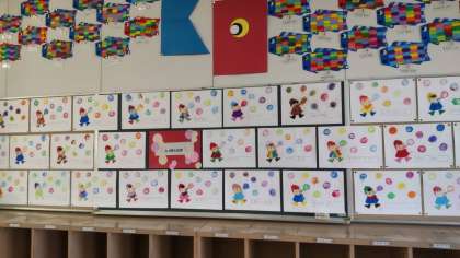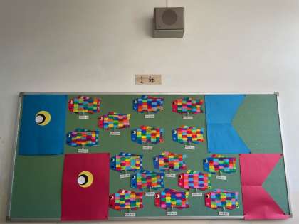 クレパスで丁寧に塗り込み、カラフルなこいのぼりが完成しました。