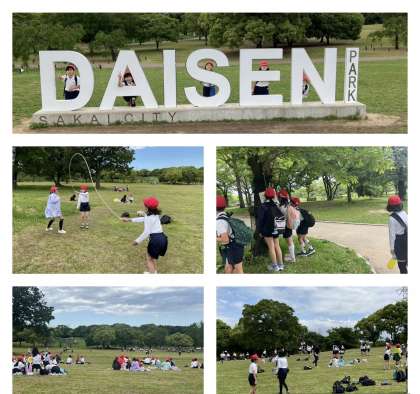 大仙公園では、班で協力しながらポイントラリーをし、友達とのお弁当やはじめてのおやつ、広場での自由時間を全力で楽しみました。