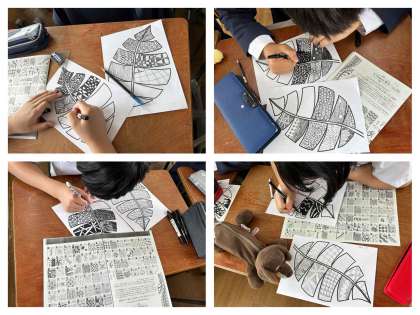 図工の授業でゼンタングルをしました。
