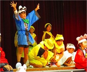 初めての英語だったので、セリフを覚えるのに苦労しました。しかし、学習発表会が近づくにつれて、自分のセリフに自信を持って表現することができました。