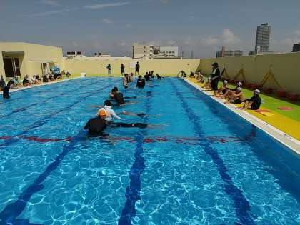 今日から、24日までの四日間、五年生と六年生で泳力向上を目標とする児童を対象に水泳指導を行います。