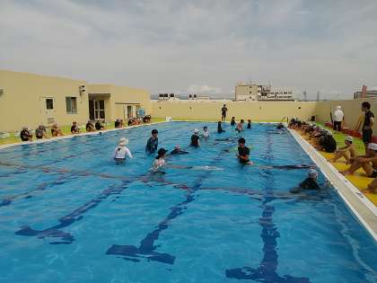 四日間に渡った水泳練習も今日が最終日です。最後に25メートルの泳力チャレンジを行いました。みんな、四日間の練習の成果を出そうと頑張っていました。