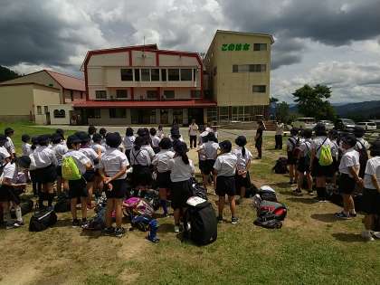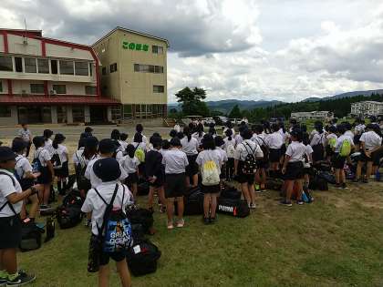 お昼を食べた後、開舎式を行いました。宿の方に、周りの景色を紹介してもらいました。