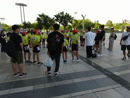 ゼッケンを着けた後、注意事項を聞いて、いよいよスタジアム入りです。