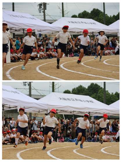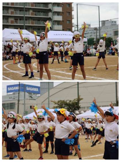 団体演技「未来見に行こう!アイディアBorn!」では,元気さ,明るさでは他の学年には負けないぞ!と,練習の成果を発揮してくれました。本部席の後ろでは「かわいい〜!」というお声もいただき,子どもたちも達成感や成就感を味わうことができたようです。楽しく踊る子どもたちに,元気をもらっていただけたのではないでしょうか(*^▽^*)