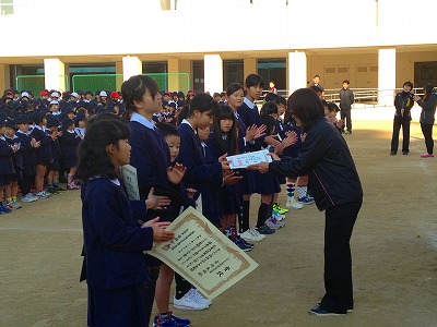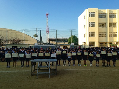 11月30日(月)の全校朝会で、各賞を受賞した子どもたちを表彰しました。