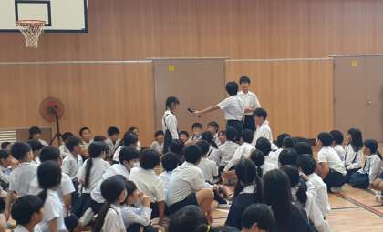 本日の集会は2年生と4年生のきょうだい学年集会でした。