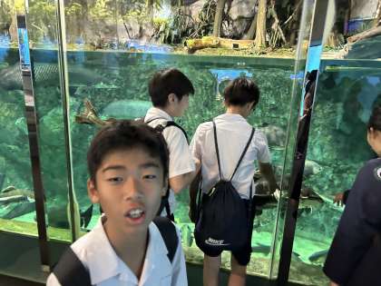 いよいよ修学旅行も終盤になりました。鳥羽水族館で、それぞれグループに分かれて、見学したり、お土産を購入したりして、います。