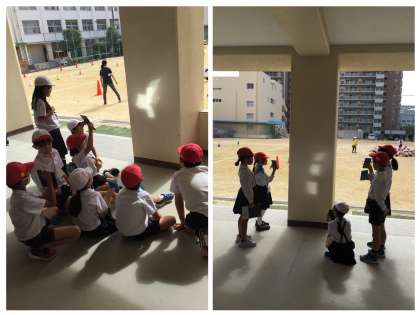 ピロティの柱に,はね返した光を映したり,班や号車のみんなで光を重ね合わせたりする活動を通して,「はね返した光はどのように進むのだろうか」という問いに対する予想をしっかりと考えることができました。みんなで楽しみながら学習に取り組むことができています!(^^)