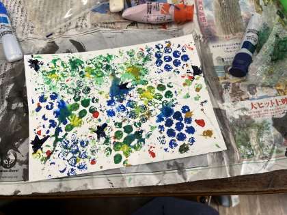 「〇〇でかこう!ポストカード」で自然にあるものや、作品展で作った材料の端材から模様を作りました。