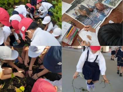 おいもほりが終わった後は、教室でじっくり観察カードを書いたり、つるを使って縄跳びをしたりして楽しみました。
