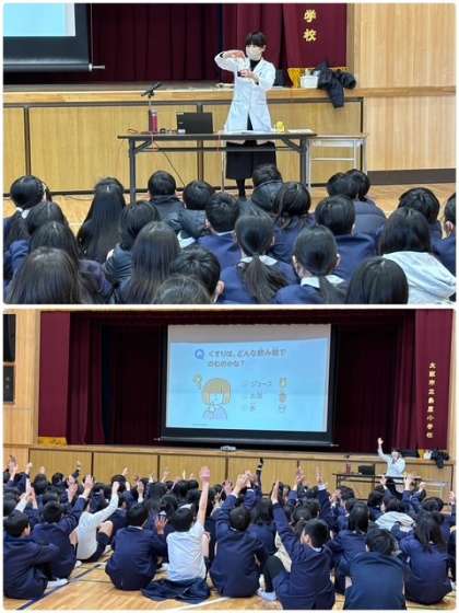 また、薬をジュースと一緒に飲むことの危険性が視覚的に分かる実験もあり、子どもたちは興味津々でした。