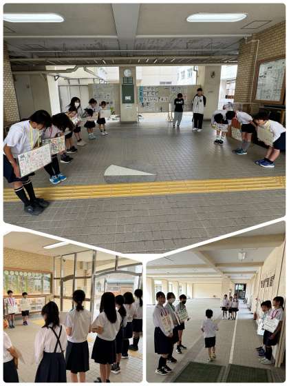 今週、島屋小学校はあいさつ週間です。