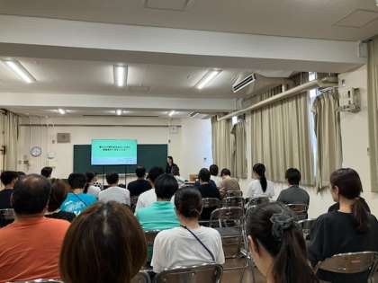 本校教職員だけでなく、保護者の方も多数参加されました。子どもたちの見せる様々なサインをキャッチし、学校と家庭、地域が子どもに寄り添い、思いを共有しながら連携することで、子どもたちが安心して過ごすことのできる環境づくりにつながることを学びました。