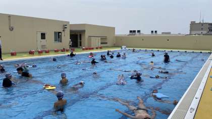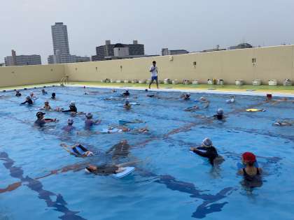 1学期の水泳学習では、背浮きやけのび、バタ足の学習に取り組みました。単元の最初に行った「安全確保につながる運動」の学習では、背浮きで「浮けた!!」と喜ぶ姿がたくさん見られました。けのびやバタ足の学習では、腕を伸ばし、ストリームラインを意識して泳ぎました。1学期最後の水泳の学習では、25mコースを使って泳ぐことにも挑戦しました。2学期のプール水泳でも水中での安全に気を付けながら、もぐること・浮くこと、浮いて進む運動などに挑戦していきましょう。