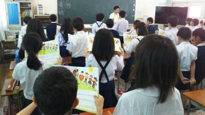 2時間目、4年生の教室では、音楽の学習をしていました。