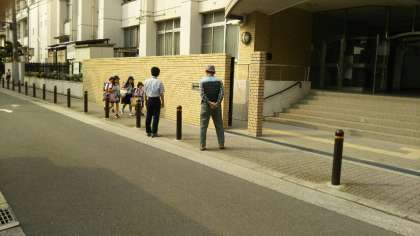 写真上中:登校中見守り活動を行う本校の管理作業員