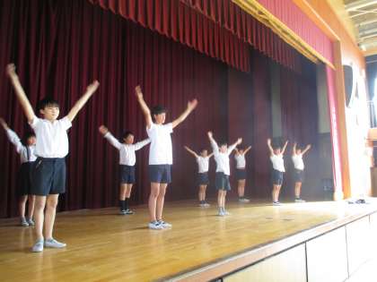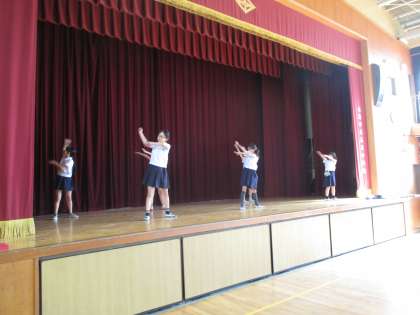 運動委員会では、6月、7月の委員会発表に向けラジオ体操の練習に励んでいます。練習では、動きのつながりを意識し体を動かしたり、動画を見て自分がどのような動きをしているのかを確認したりして練習に励みました。