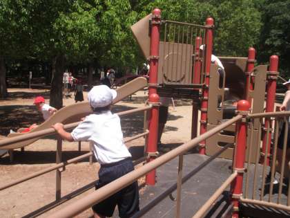 昼食後は広場で友達と遊びました。遊具で遊んだり,おにごっこをしたりと各々楽しく遊ぶことができました。その後は日本庭園を見学し、歴史ある日本の庭を見ることができました。庭園では,学校では見られない植物を観察することができ,必死にメモをとる子どもたちもいました。