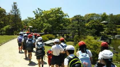 オリエンテーリング、遊具での活動、日本庭園の見学と、しっかり活動したので、少し疲れましたが、最後までしっかりと並んで歩ききることができました。