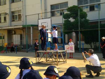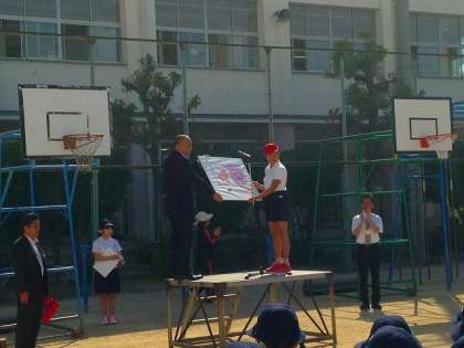 学校からは、児童会の代表が「感謝状」を渡して、感謝の気持ちを伝えました。