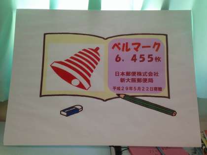 毎年、新大阪郵便局さんは島屋小学校のために、社員の皆様が1年間、ベルマークを集めてくださっています。集めたベルマークは、毎年この時期に、郵便局の方が直接持って来てくださります。