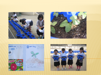 生活科の学習で、2年生からもらったあさがおの種をうえました。子どもたちは、毎日「大きくなあれ」とあさがおに一生懸命水やりをし、先日土の中からふたばが出てきました。あさがおの芽がでたことにとても喜んでおり大変嬉しそうでした。