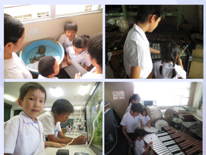 5月24日(水)3時間目に1・6年生が合同で学校探検を実施しました。グループに分かれて6年生が1年生をリードし、給食室・理科室・パソコン室・音楽室・図工室・図書室・職員室・家庭科室・校長室の8ヶ所をスタンプラリー形式で楽しく探検しました。