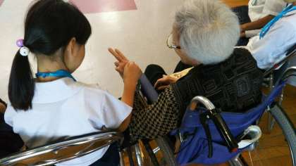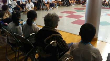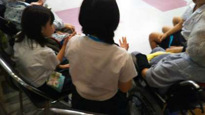 70代後半から90代後半までの方と簡単な手遊びをしたり、子どもたちが音楽の時間に練習した歌を披露したりしました。