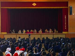 2月12日(水)に、クラブ発表として「朝鮮文化クラブ」が舞台発表を行い、楽器と踊りを組み合わせた「サムルノリ」を披露しました。練習は、2学期から、韓国朝鮮の楽器と踊りを練習しました。子どもたちは慣れない楽器とリズムに最初は戸惑っていましたが、練習を重ねるうちに親しみを感じるようになり、発表後は「もっとやりたい」などといった声も聞かれました。